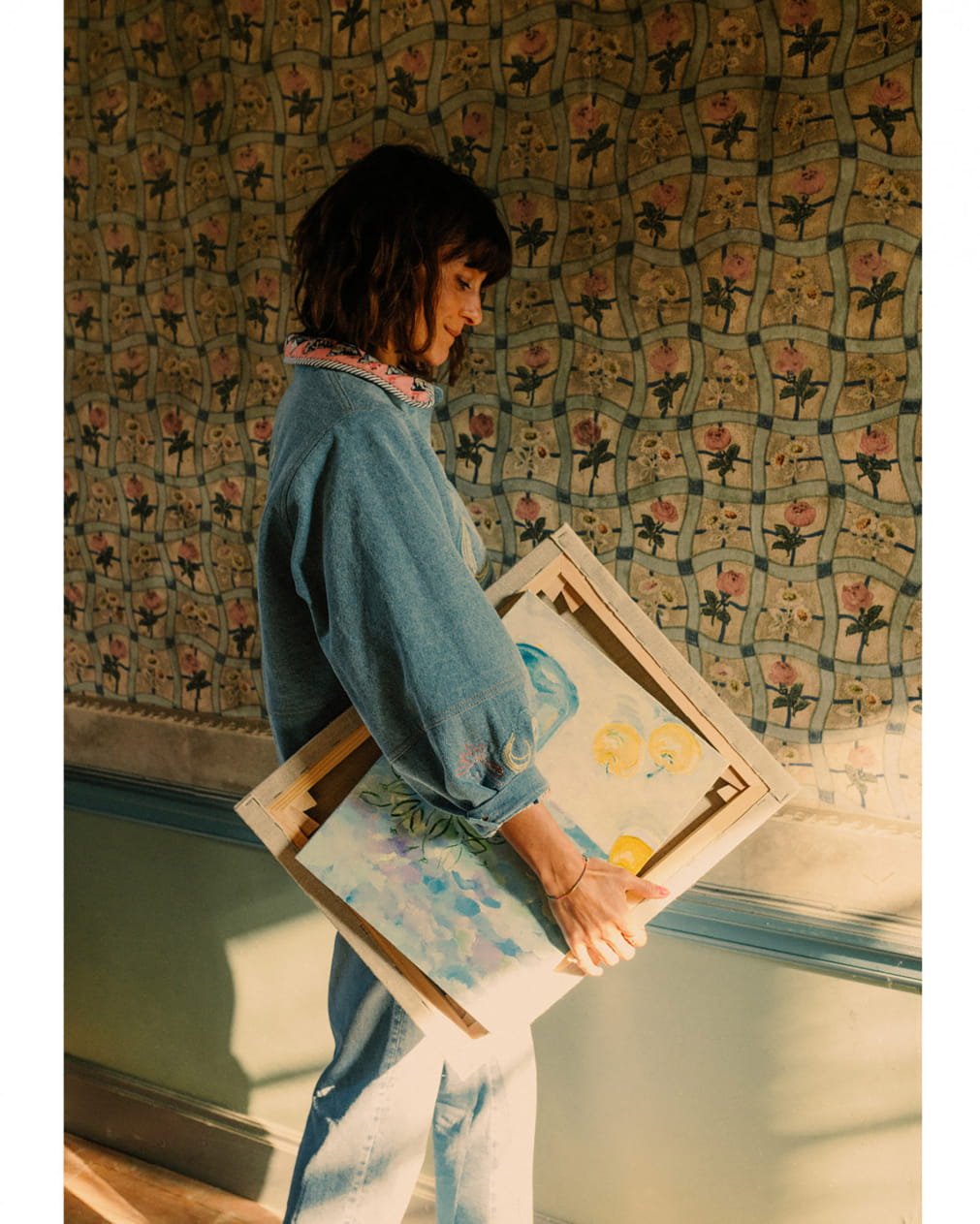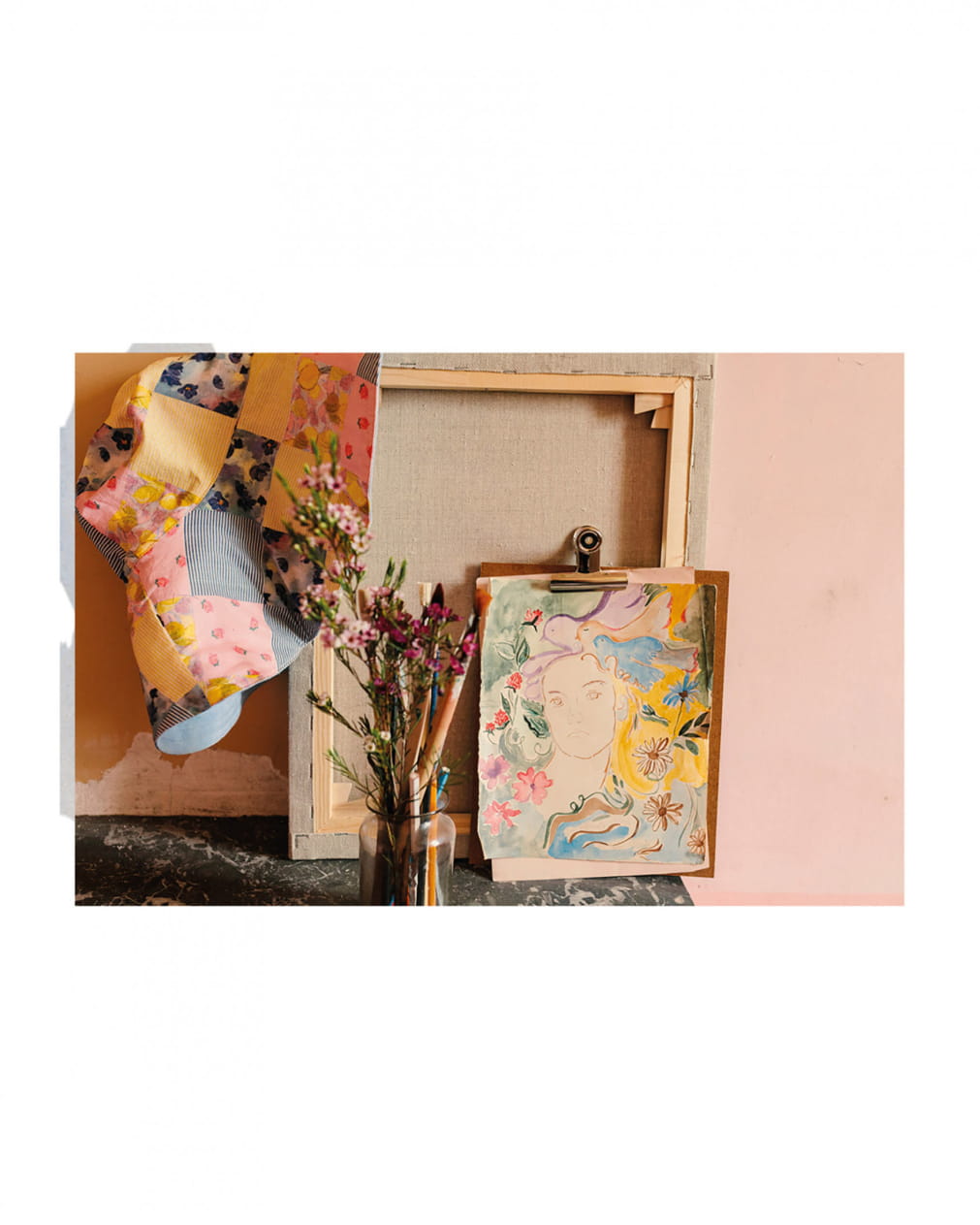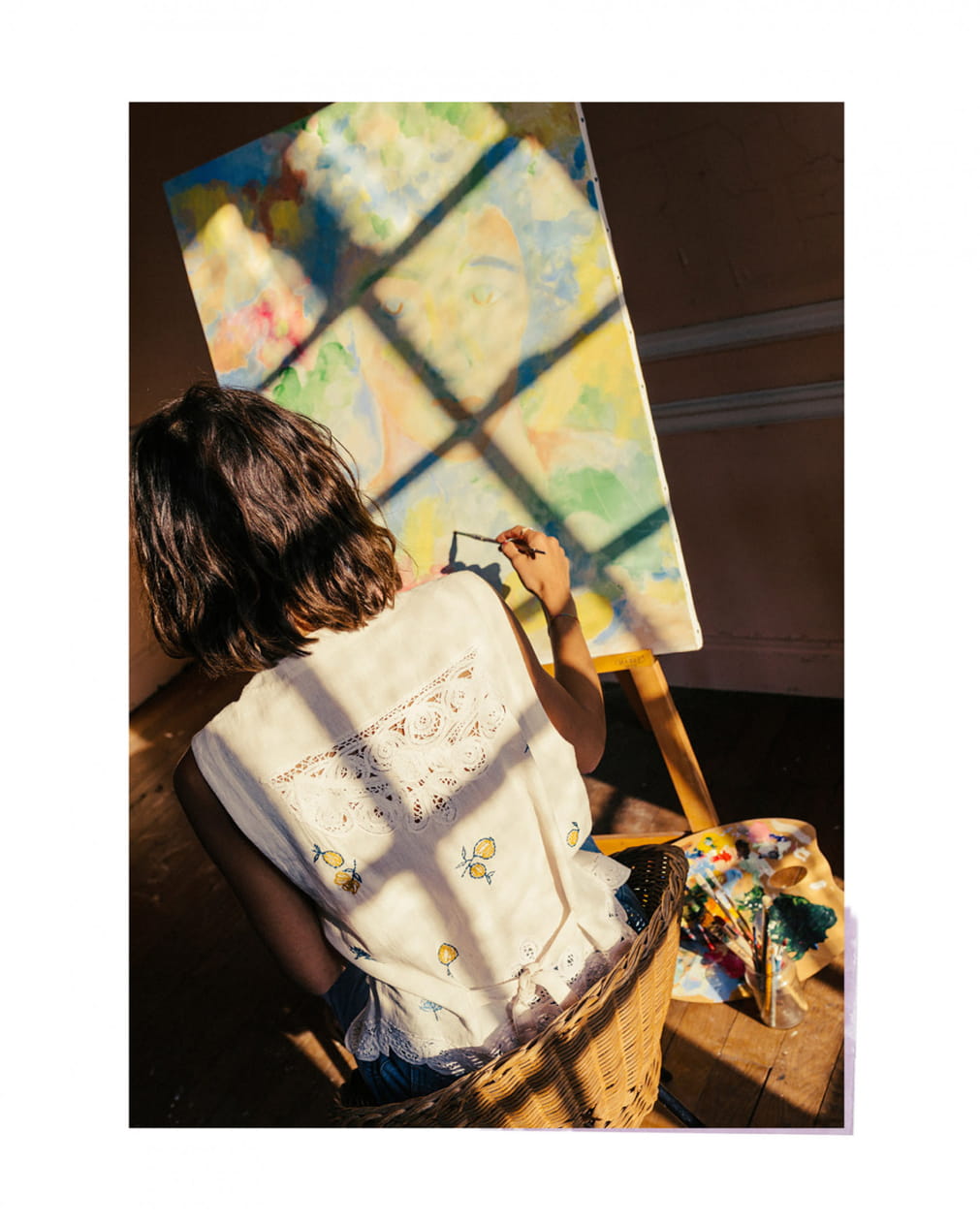 A brightly luminous painting, with multiple dancing suns ready to embrace and intertwine, fruits you'd simply love to bite into, and delightful happy smiles. Parisian artist and painter Nina Koltchitskaia has designed a limited edition collection for Sessùn. 18 completely unique new pieces making up a wardrobe imbued with softness and lightness.