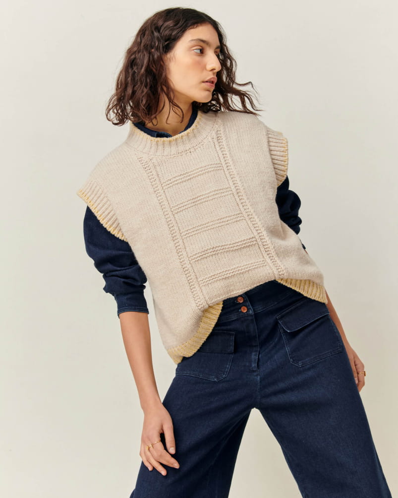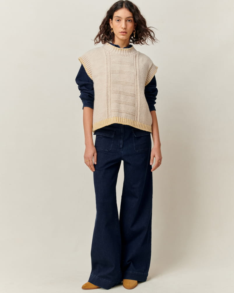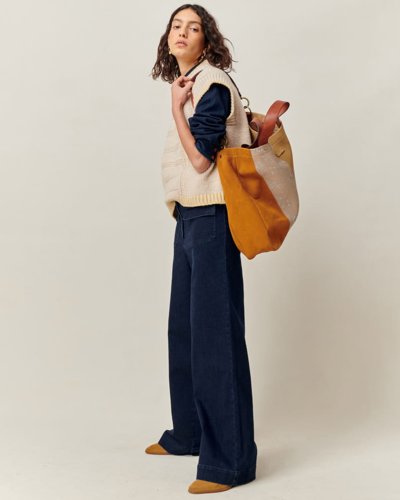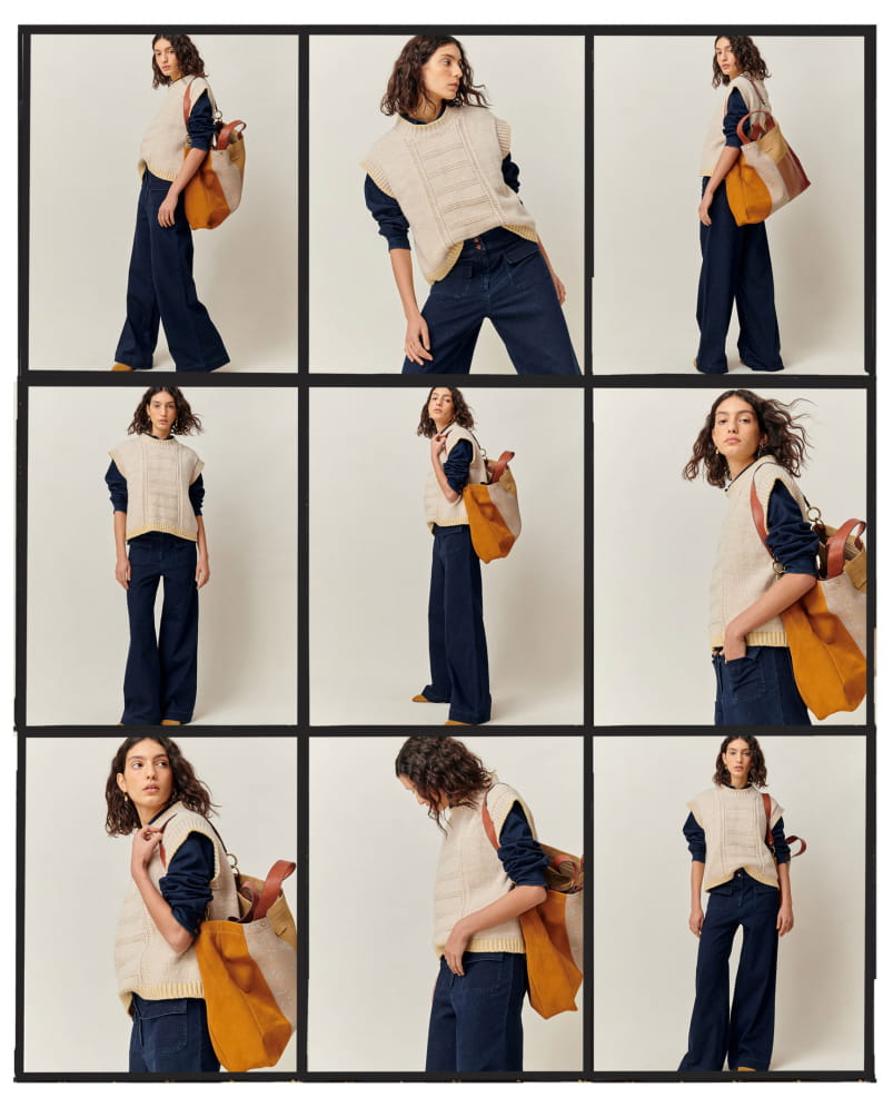 Iconic to the Sessùn wardrobe, the patch pocket shirt and light denim flared trousers take on a new look, combined with the colours of the season.