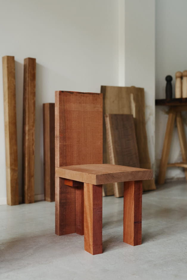 After studying furniture design and interior architecture, Laura Greindl founded Atelier 365 in Brussels, a hybrid, collaborative project halfway between a traditional cabinetmaking school and a furniture workshop. For our Creative Flowering carte blanche, dedicated to research and experimentation, she imagined three seats created instinctively from off-cuts of solid wood, assembled using traditional cabinetmaking techniques. Interview.