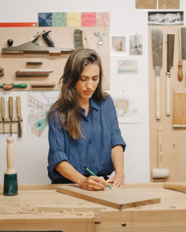 My name is Anne-Sophie Ricco and I started working freelance with wood at the end of 2021, after completing my professional training at Ecole Boulle in Paris. As a teenager, I had the good fortune to live in Africa, where I discovered statuary, furniture and functional wooden objects stamped with the patina of time. In my former professional life, I worked in the cultural field, in cinema and in international cooperation. All these life experiences and foreign travels have shaped me a great deal, and over time I have developed a particular sensitivity for the different forms of craftsmanship and for the noble, demanding, living and plural material that wood is.