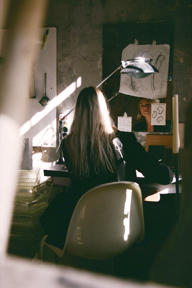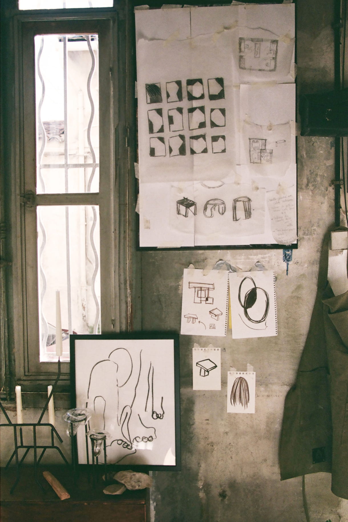 My morning routine always starts with a good cup of tea and an inspiring playlist. As for my creative process, I invariably start by researching with charcoal drawings. I often proceed with the same method. The creative idea usually emerges very quickly, on the spur of the moment.