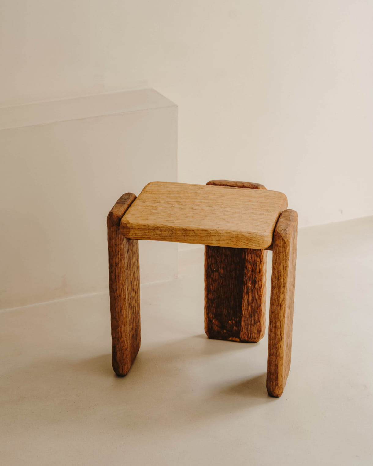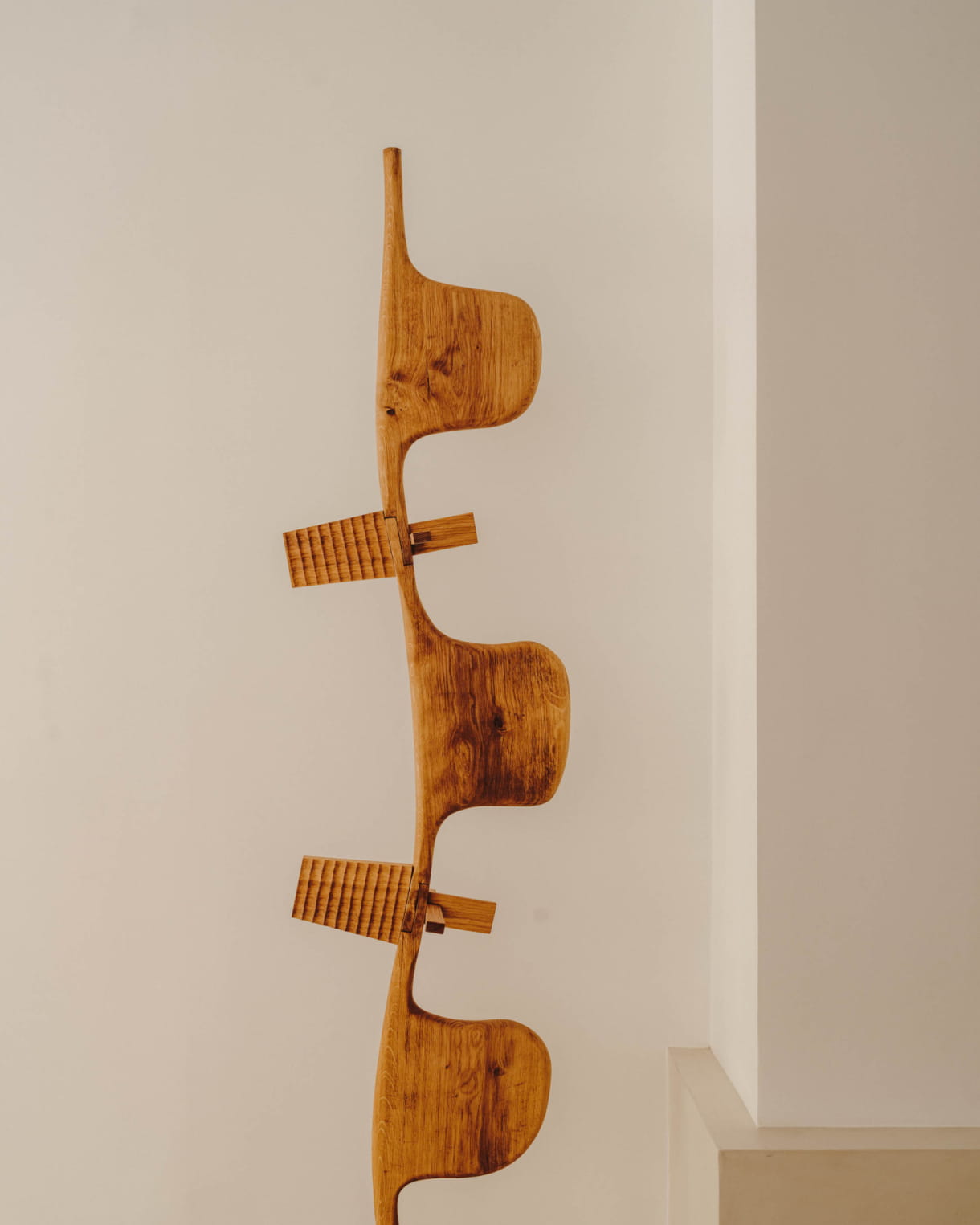 For our Creative Flowering carte blanche, Eloi Schultz designed a sculpture made from three pieces of oak, carved and assembled together using a traditional carpentry technique. An object that questions the relationship between human beings and their environment.
