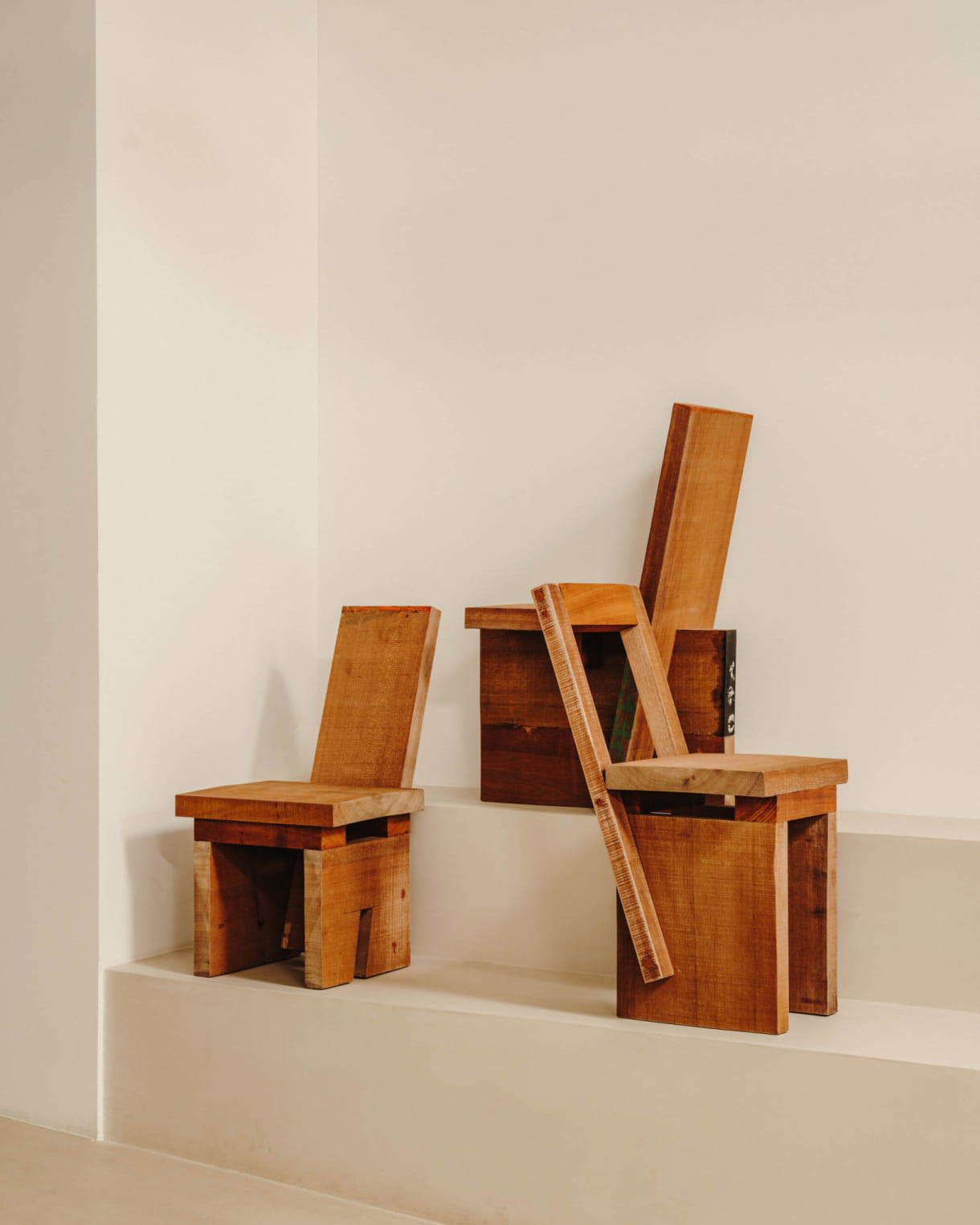 For Creative Flowering, she imagined three seats created instinctively from off-cuts of solid wood, and assembled using traditional cabinetmaking techniques.