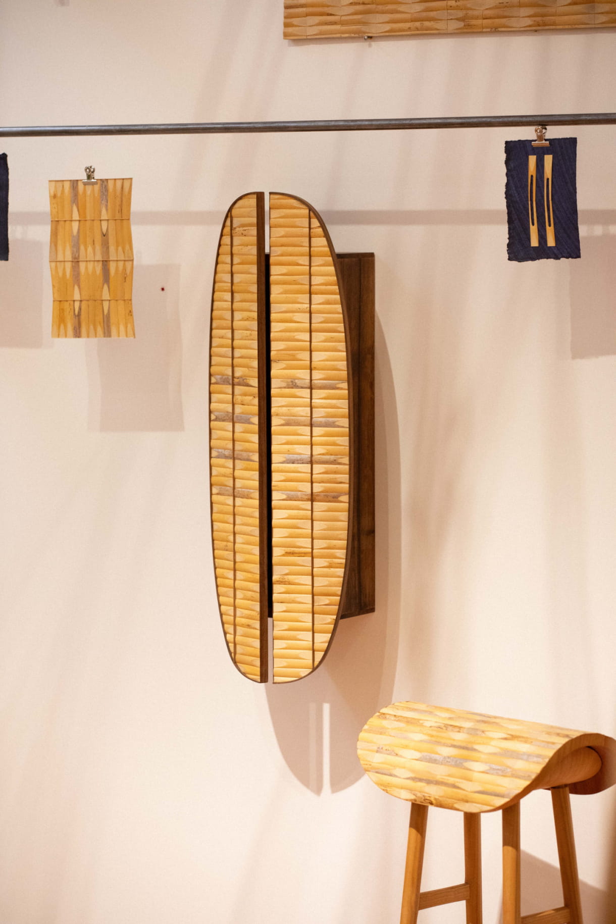 I grew up in a creative world. My paternal grandmother painted and sculpted, and my maternal grandmother taught me foraging and crafting from a young age. Every beach walk would end with our pockets full of driftwood, destined to become sculptures or lamp bases. Their house in Brittany is filled with these creations. My mother also always made things, alongside her work as an art director in fashion, and I often drew beside her. The desire to create has never left me. It has always felt natural to be surrounded by objects and works I have made myself, to fill my home with my creations. So I naturally pursued a baccalaureate in Applied Arts, then a degree in Global Design which included interior architecture, product design, and graphic design at the Ecole Bleue in Paris. Afterwards, I completed a Master’s in Design at the Beaux Arts in Marseille. This diverse training has given me a cross disciplinary approach to design, at the intersection of design, craftsmanship, and art. When I moved to Marseille, I discovered the Provence cane, an endemic plant of the Mediterranean basin, and the craft of reed making for wind instruments that’s attached to it. Today, I collect offcuts from these workshops, reeds cut and weathered by the sun, and reimagine them, drawing on the codes of artisan crafts. My project Alto explores a new form of marquetry using these offcuts, which I now develop through projects spanning objects, architectural coverings, furniture, and scenography.