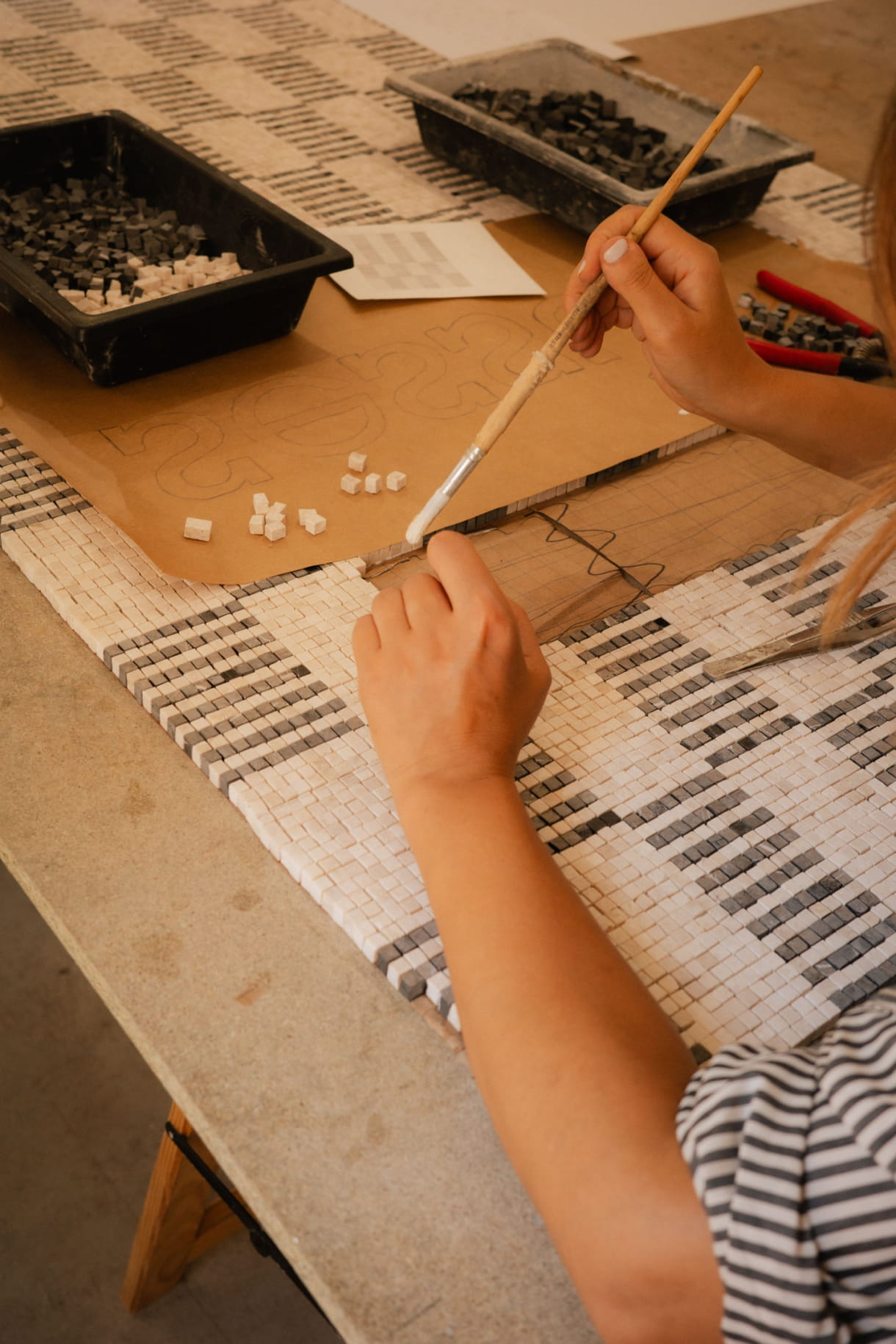 I rely entirely on manual techniques, using only my hands, a tile nipper, and the skills I've honed over the past 20 years to create my work.