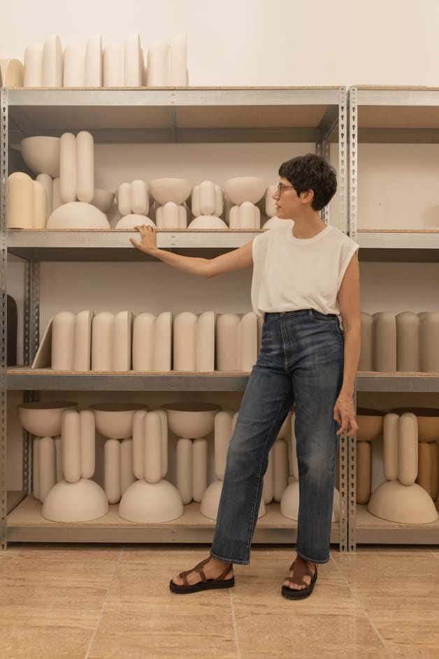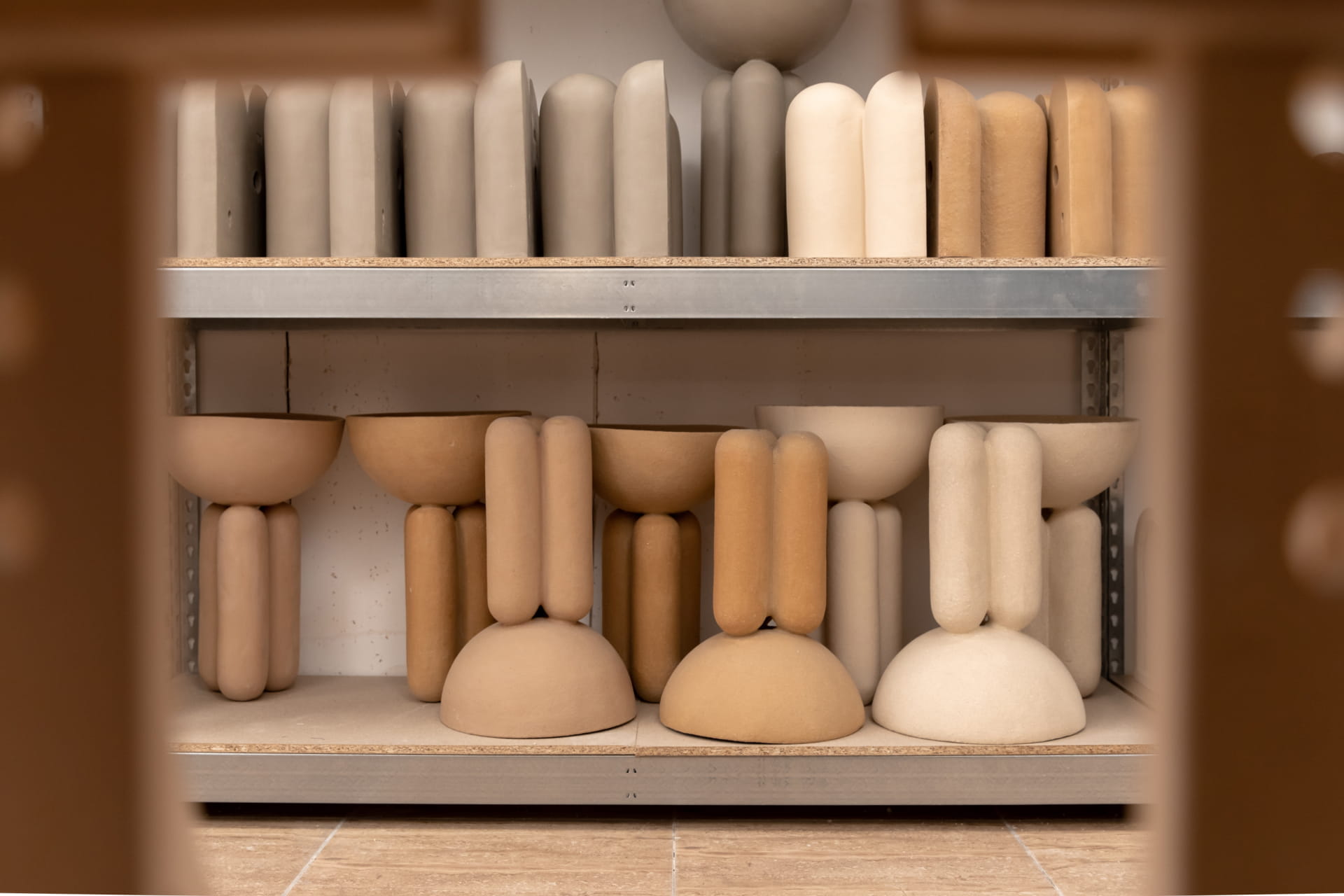 I am a designer. I design objets d'art, furniture, and lighting. I draw them, work on the lines, the proportions. The choice to work with a particular material is for me a means, not an end. It's a means of being autonomous, of not relying on publishers and brands to see my work exist. It's a means of being the main person at all stages, from production to distribution, as well as communications. Also, I'm concerned about the environmental impact of mass production... My encounter with clay has helped me respond to this desire for autonomy, all while working on small series, where each piece is shaped by hand. And now my work as a designer has a more complete dimension, because I've established a deeper bond with the material, through acquiring expertise in it. It's something that reminds us that good design is all about the materials, materials that you have to know and understand to be able to make work with any kind of meaning.