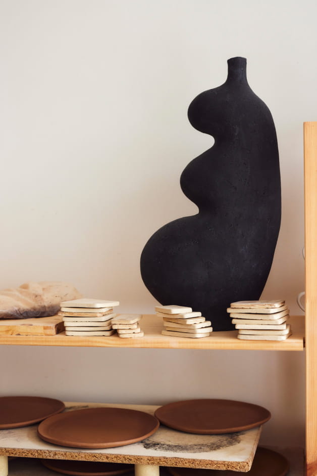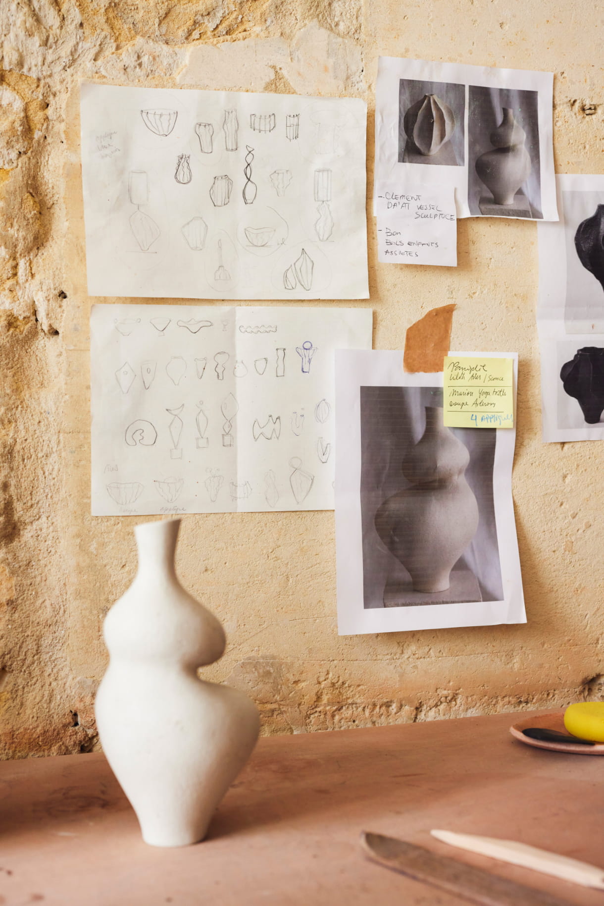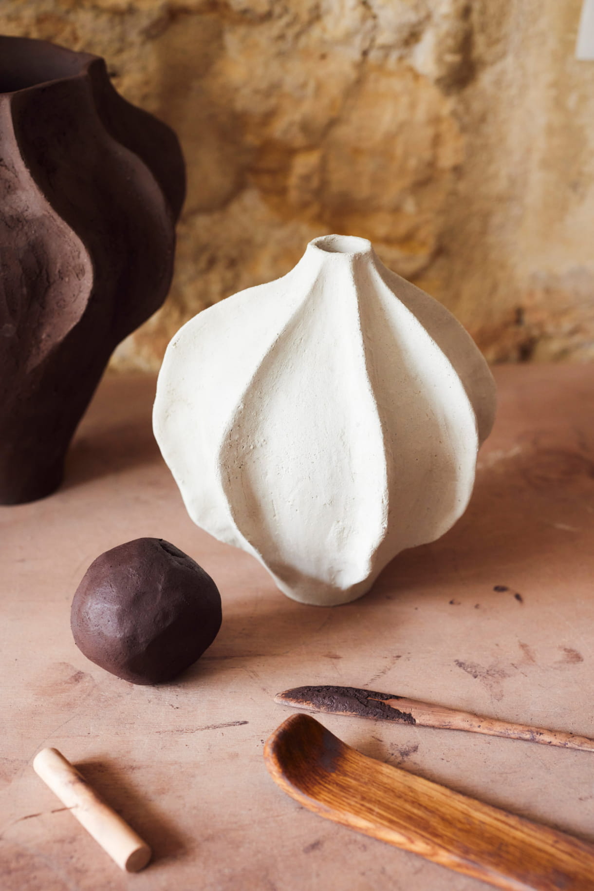 Organic forms and raw materials are at the heart of my research and work. My process begins by abstracting the curves of the human body and other living forms, such as a root or a sea creature. I draw and model them in chamotte stoneware. I then take the pieces through a series of stages, like drying, sanding, glazing and high-temperature firing.