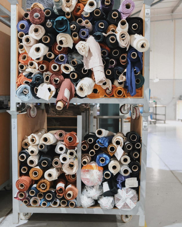 Then we have our fabric warehouse, where colleagues test and inspect all the fabrics we use. We have a big cutting section, where we cut all our production and retrieve cutting waste to recycle and make new fabric. Our most veteran colleague, Amélia, has been working there since the first day we opened our doors, 1st June 1982. We have our team of pattern-makers, the architects of each style we make.
