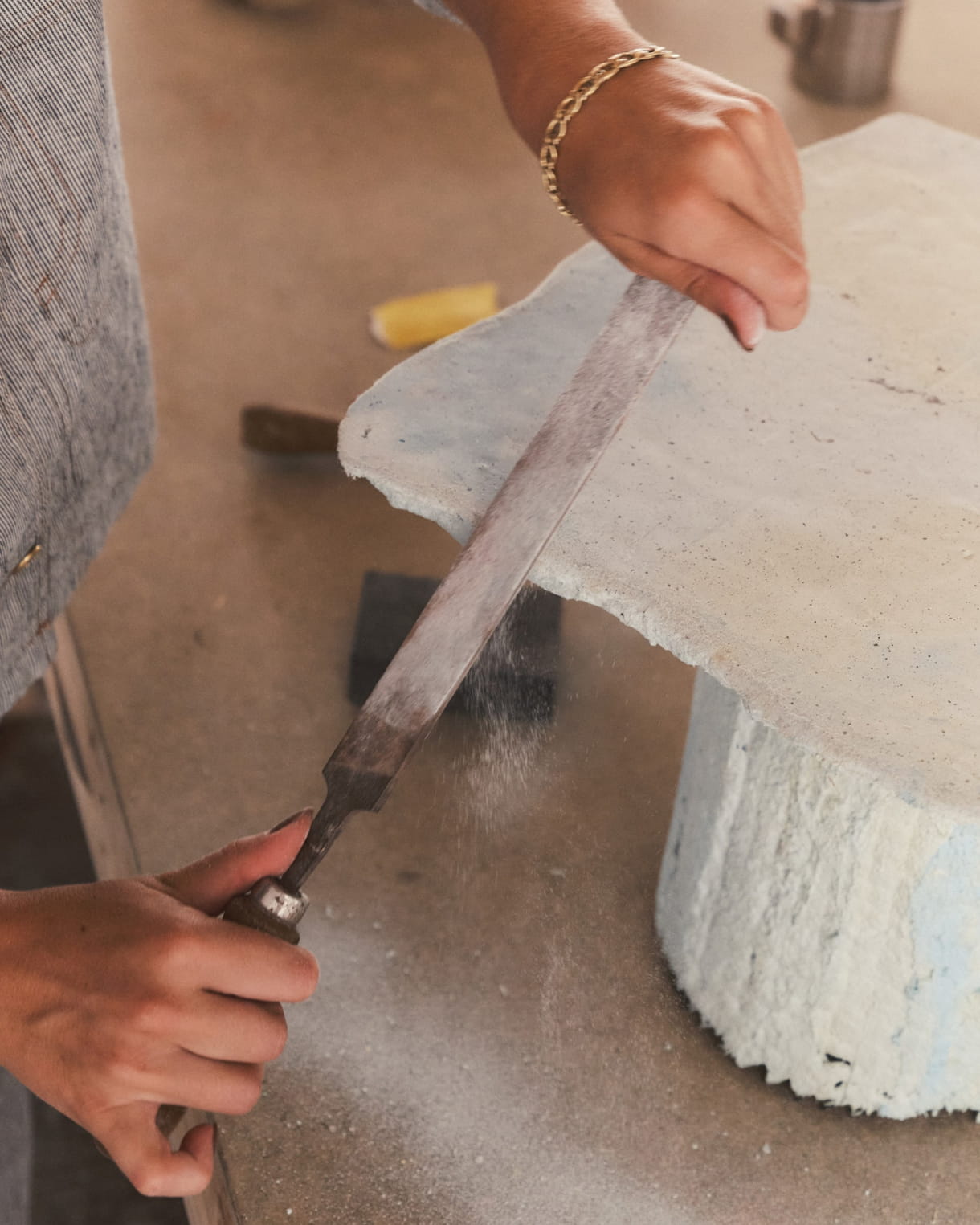 I am inspired by the materials, their texture and the possibilities that can be projected when you get to know them. The processes, and the variables and mistakes that arise are constant sources of inspiration, as they make you consider alternatives. Some of my inspirational artist are: Anita Molinero, Justo Gallego, Gaetano pesce, Lina Bo Bardi, Ken Price, Isamu Nogguchi & Georgia O'Keeffe