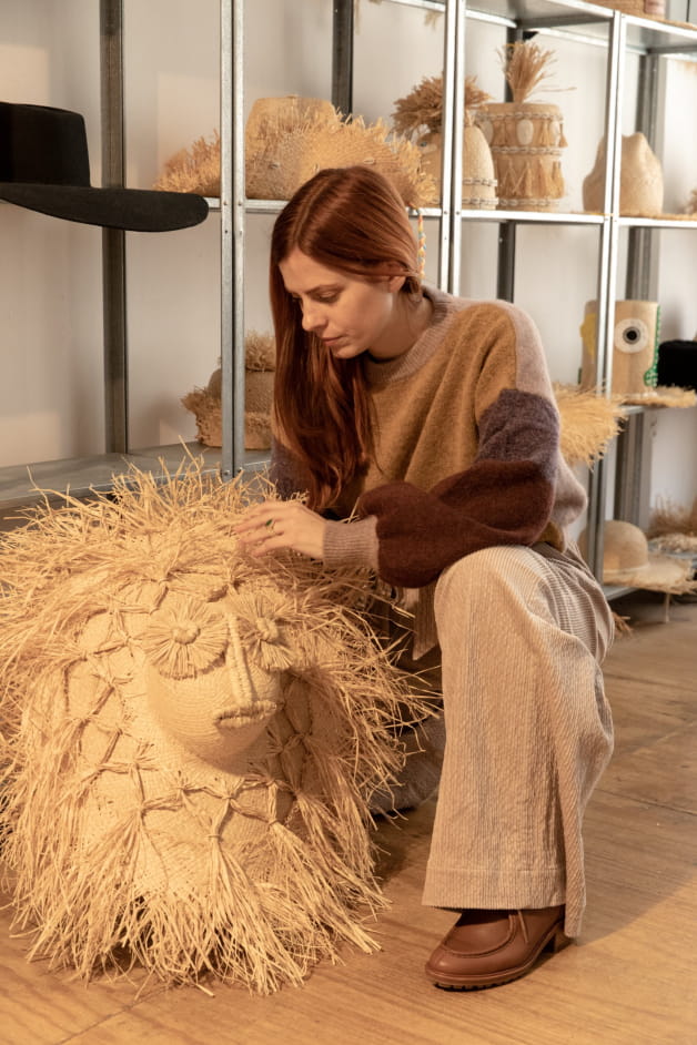 I've acquired some knowledge of straw-working, mostly due to being an Art Director for another brand that works with local communities in Ecuador. I became particularly engrossed with raffia, reflecting on its uses and how to manipulate it to create objects, faces and volumes, researching and experimenting with it on my own devices. The possibilities are endless. At PARDOhats, raffia rules supreme, but we also use felt and other equally-noble materials.