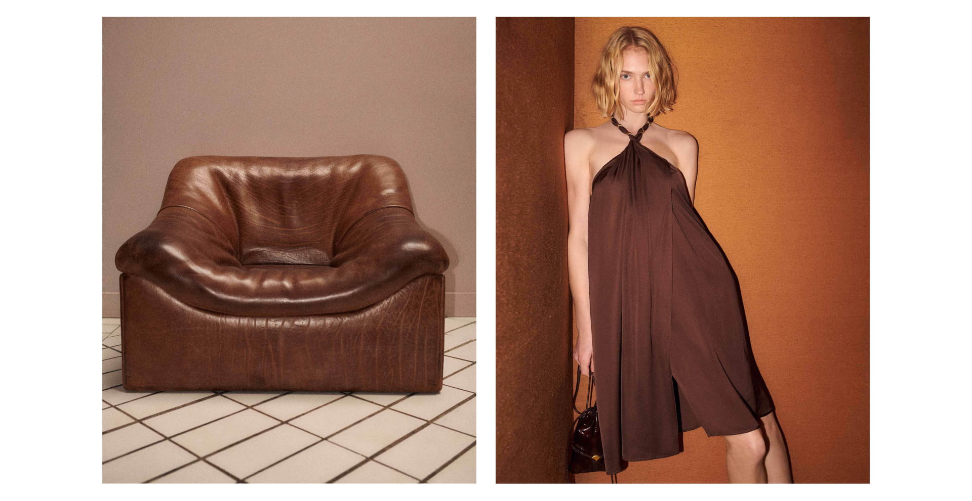 Inspired by a palette of natural colours, the supple nature of the collection echoes of leather, wood and concrete. This creates an aesthetic that is both sculptural and poetic, establishing an organic relationship with forms and movement.