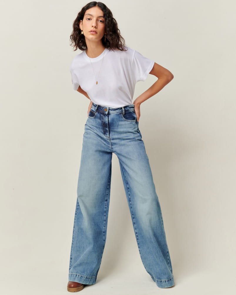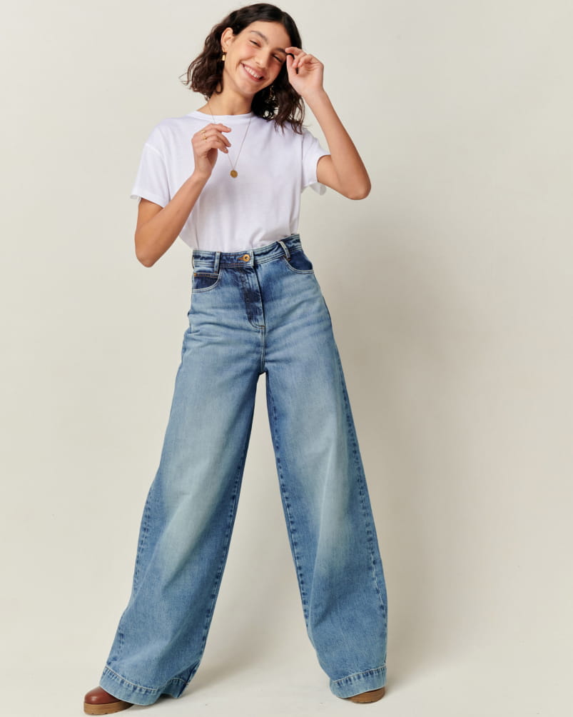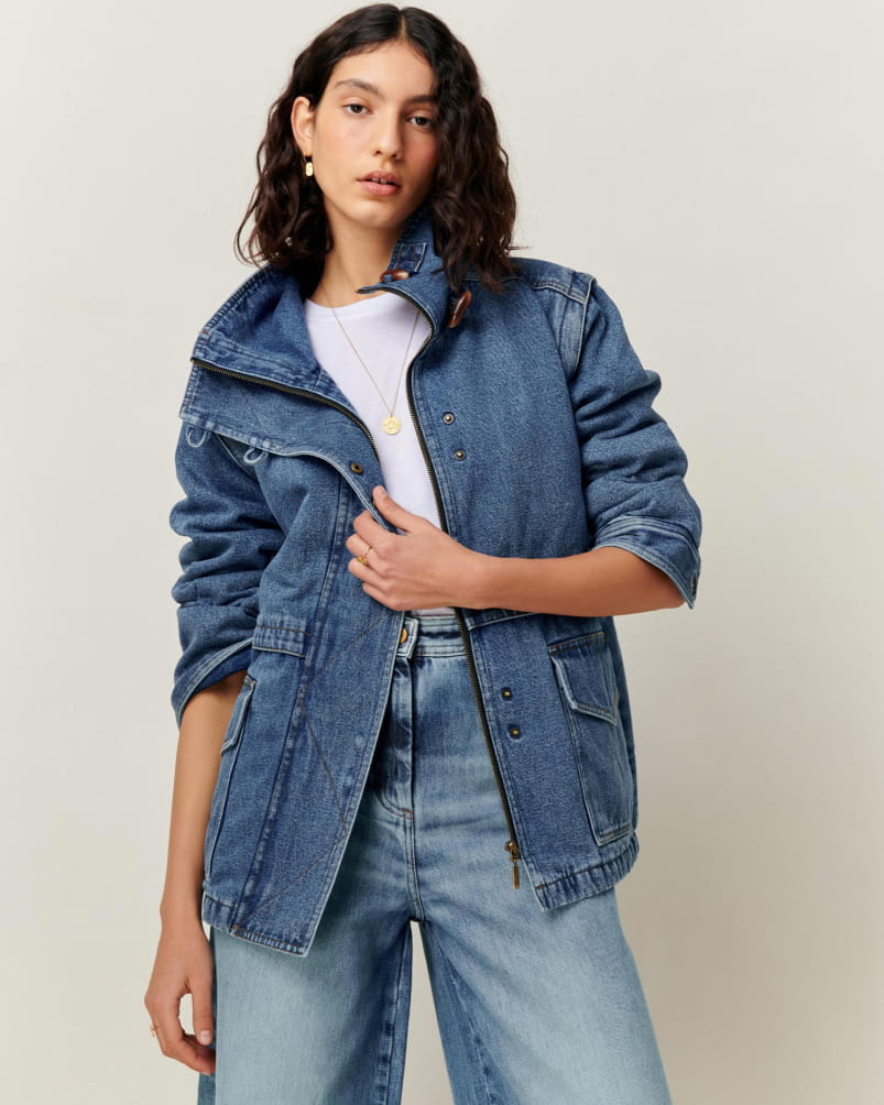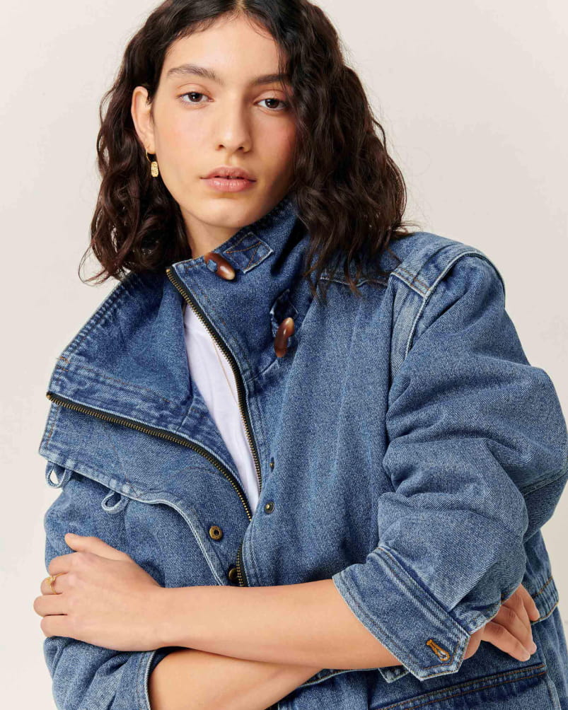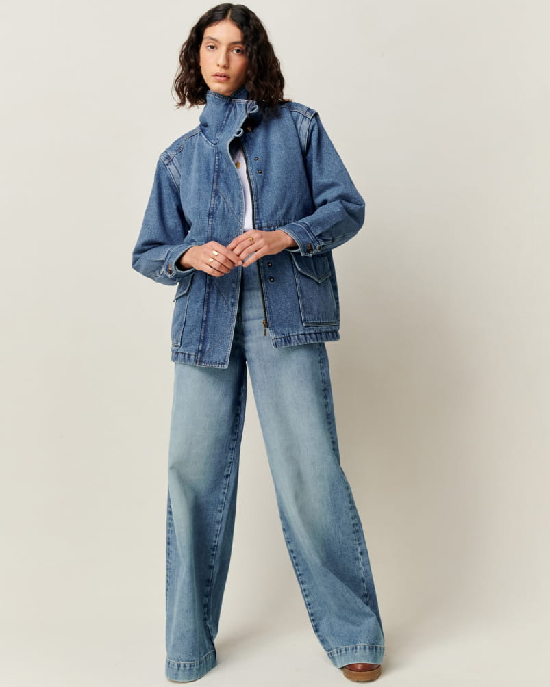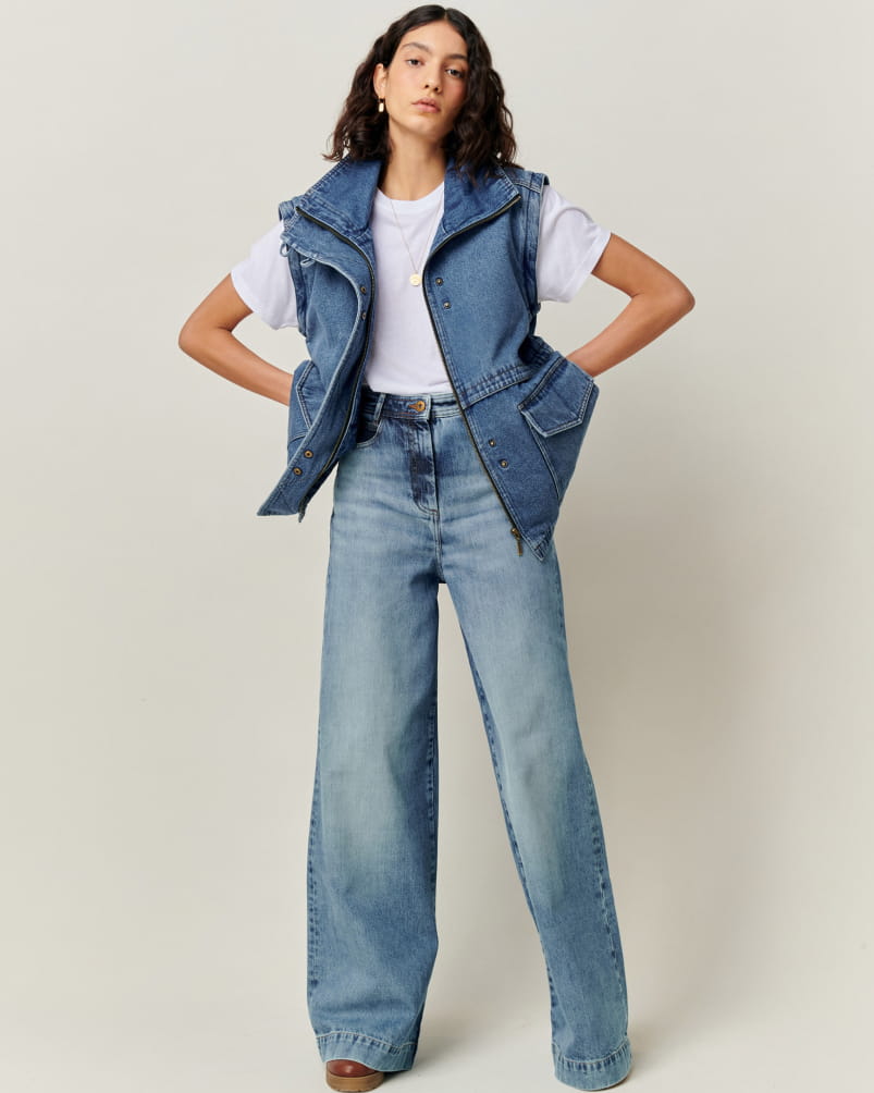 Extra-wide jeans, jackets with detachable sleeves and men’s shirts are reinvented in pale canvas, perfect for those warm summer months.