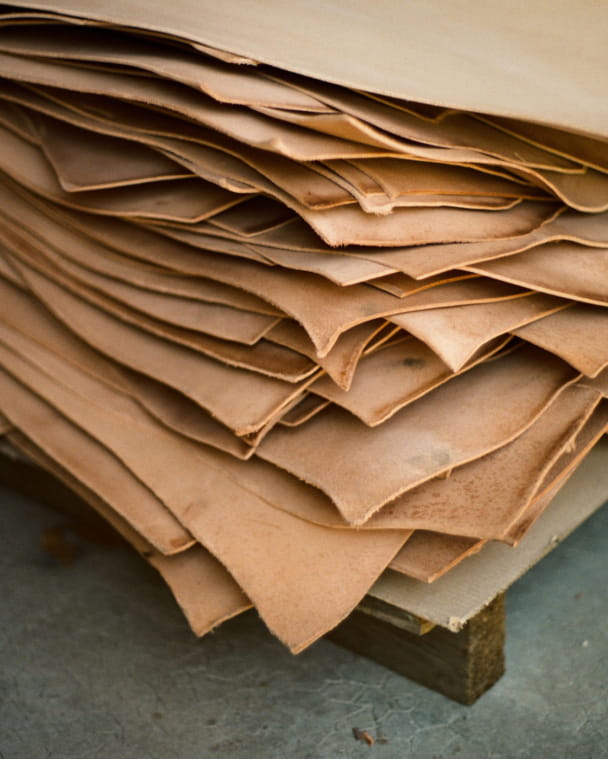 To protect the craftsmen who work the material, as well as those who wear it, we opt as far as possible for vegetable tanning. This process excludes chemical or toxic additives, and replaces them with tannins extracted from plants. This is how 21% of our leather goods (belts and bags) are treated.