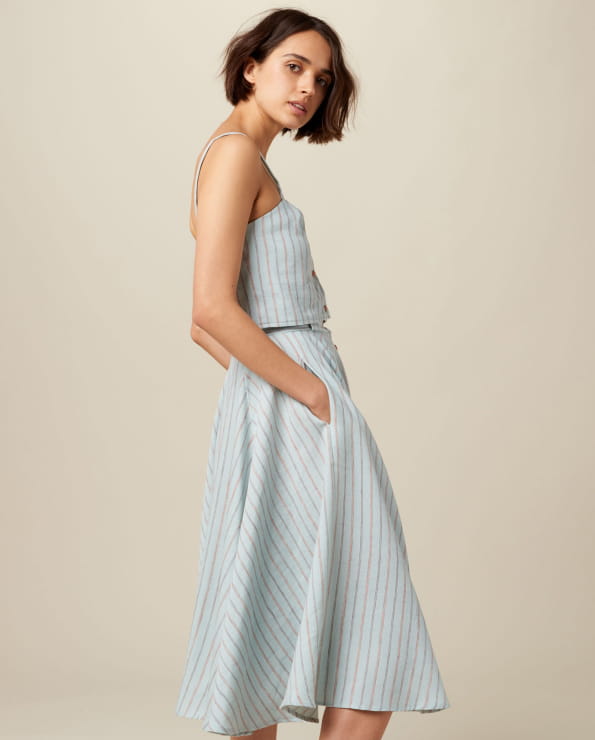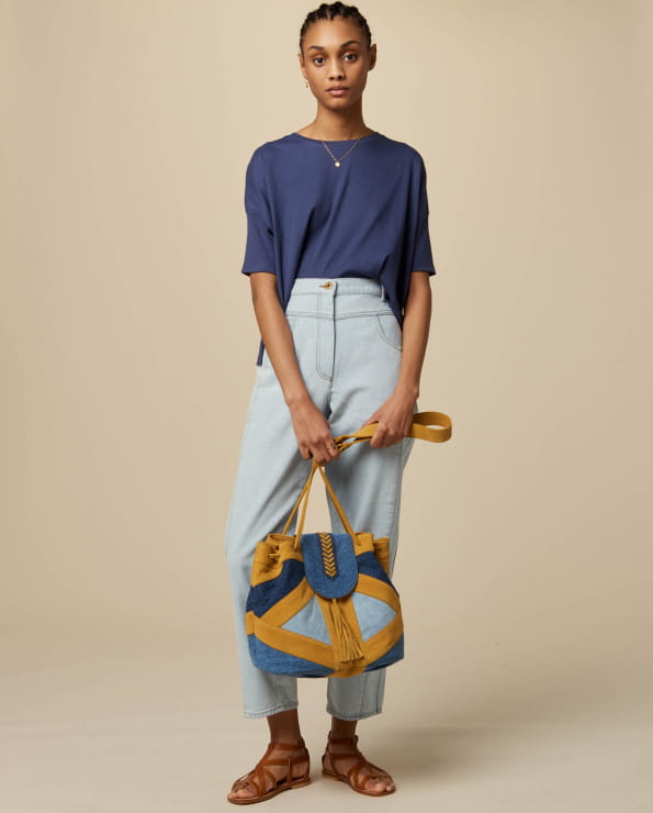 A stroll from spring to summer, fresh, colourful looks. Shades of blue with splashes of acid colour.